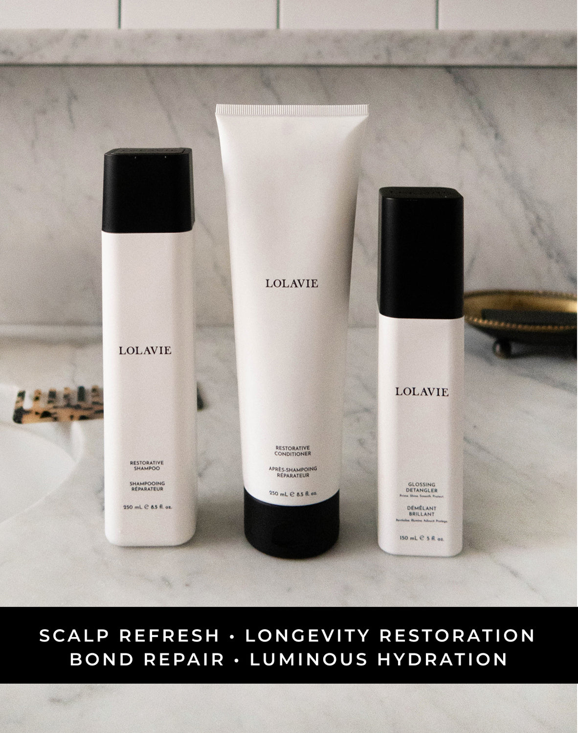 Apply Restorative Shampoo to wet hair and vigorously massage from root to tip. Rinse. Follow with Restorative Conditioner, using a generous amount from mid-lengths to ends. Rinse.
