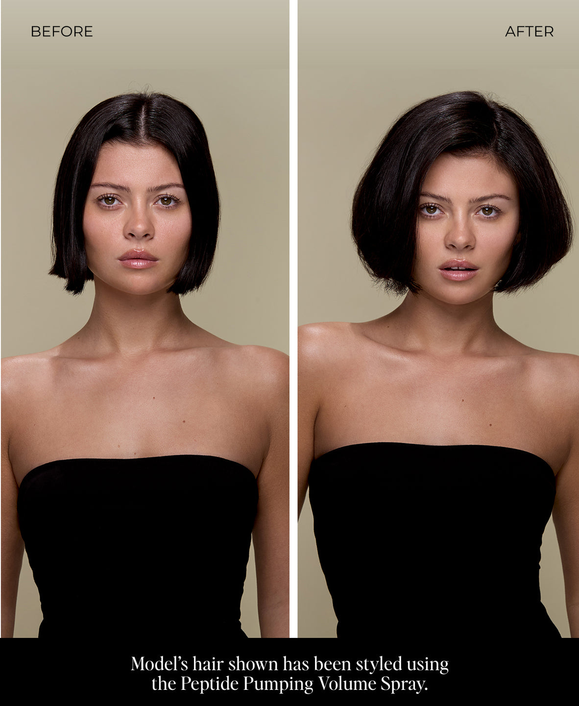 Spray onto damp or dry hair, focusing on the roots for targeted lift or throughout for overall volume and fullness. Style as desired and blow dry with heat to activate, using a round brush for added body and bounce.