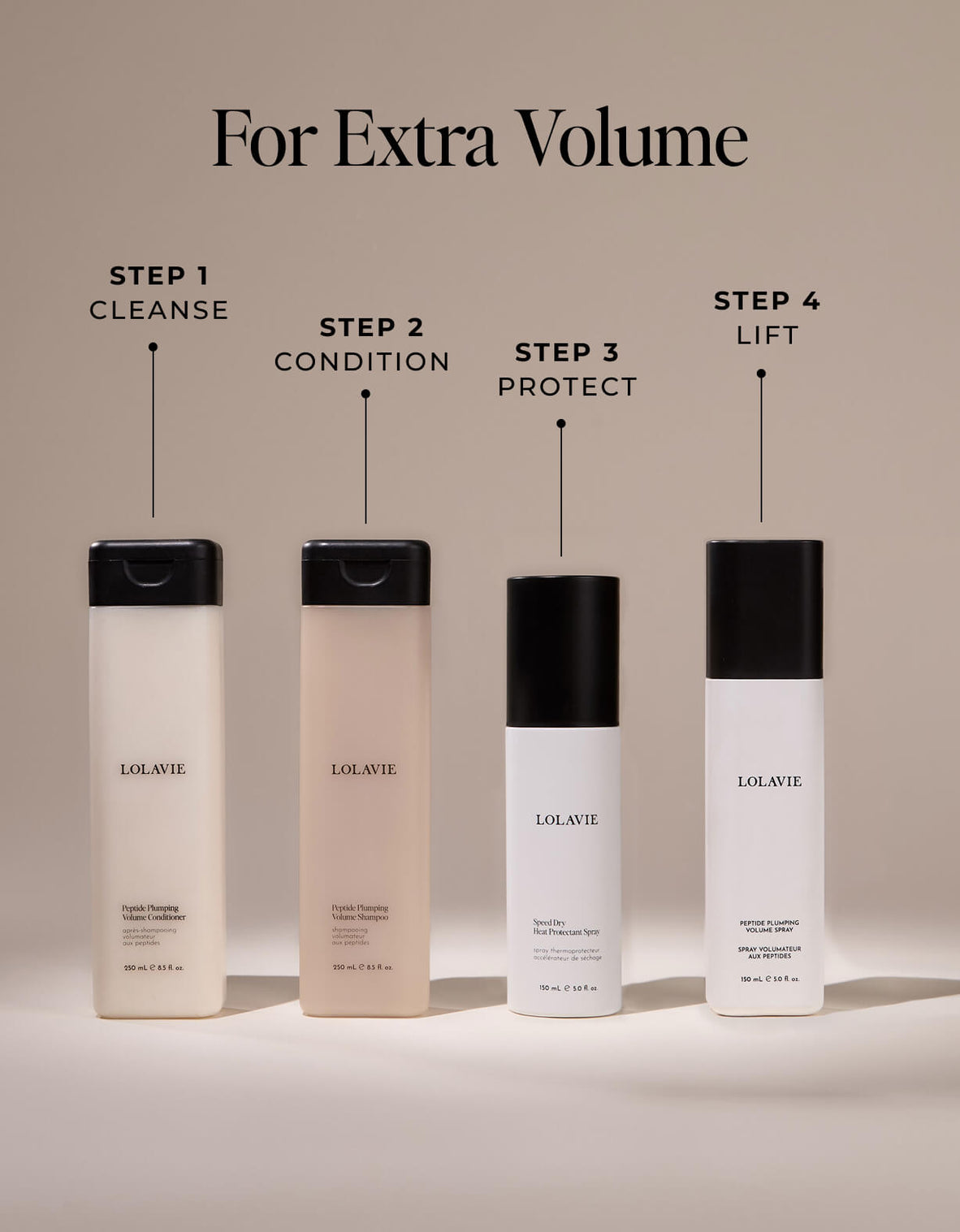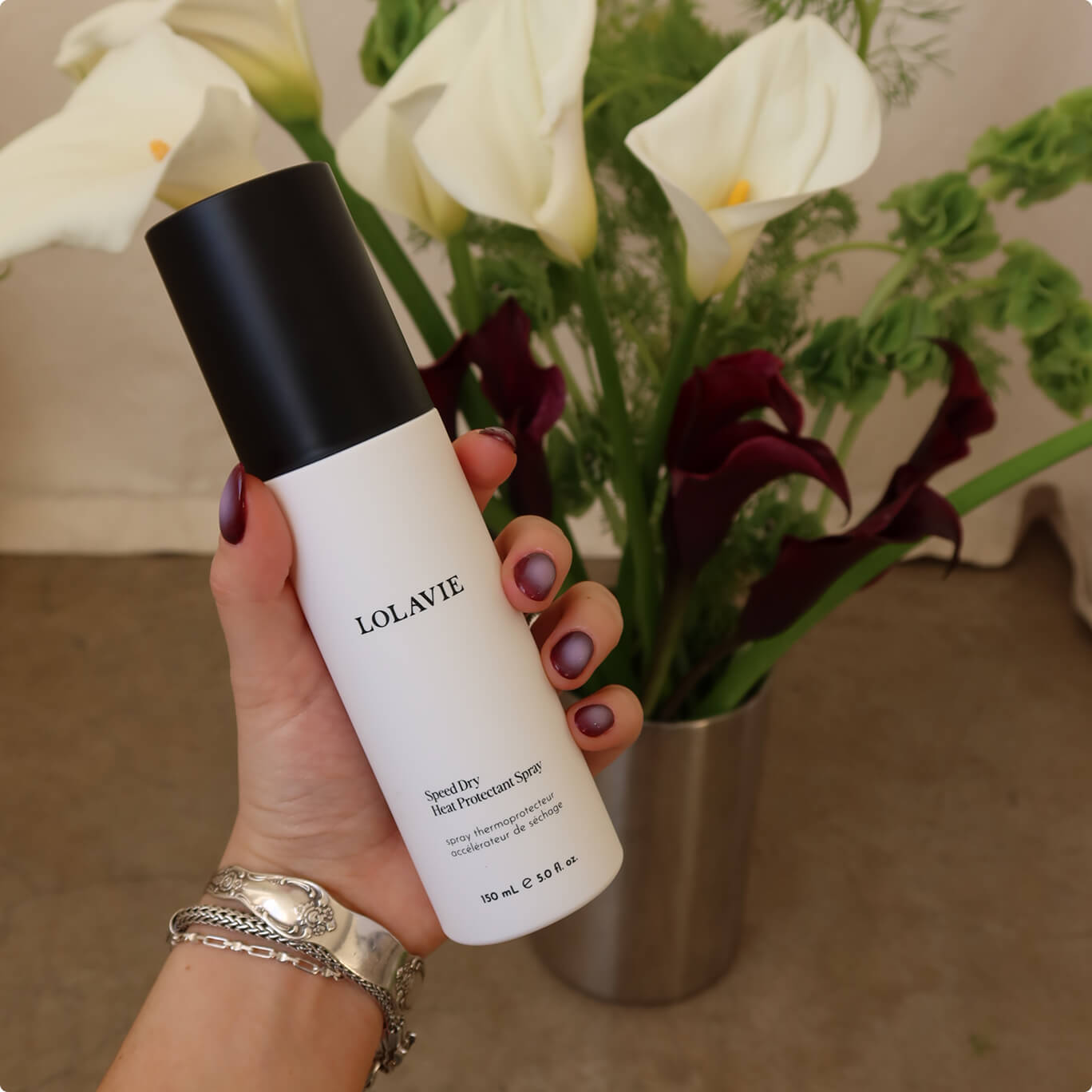 STYLIST PRO TIP: Touch-Up Trick: Keep Speed Dry Heat Protectant Spray handy for quick touch-ups. A light mist on dry hair before re-curling or re-straightening adds instant heat protection without re-washing.