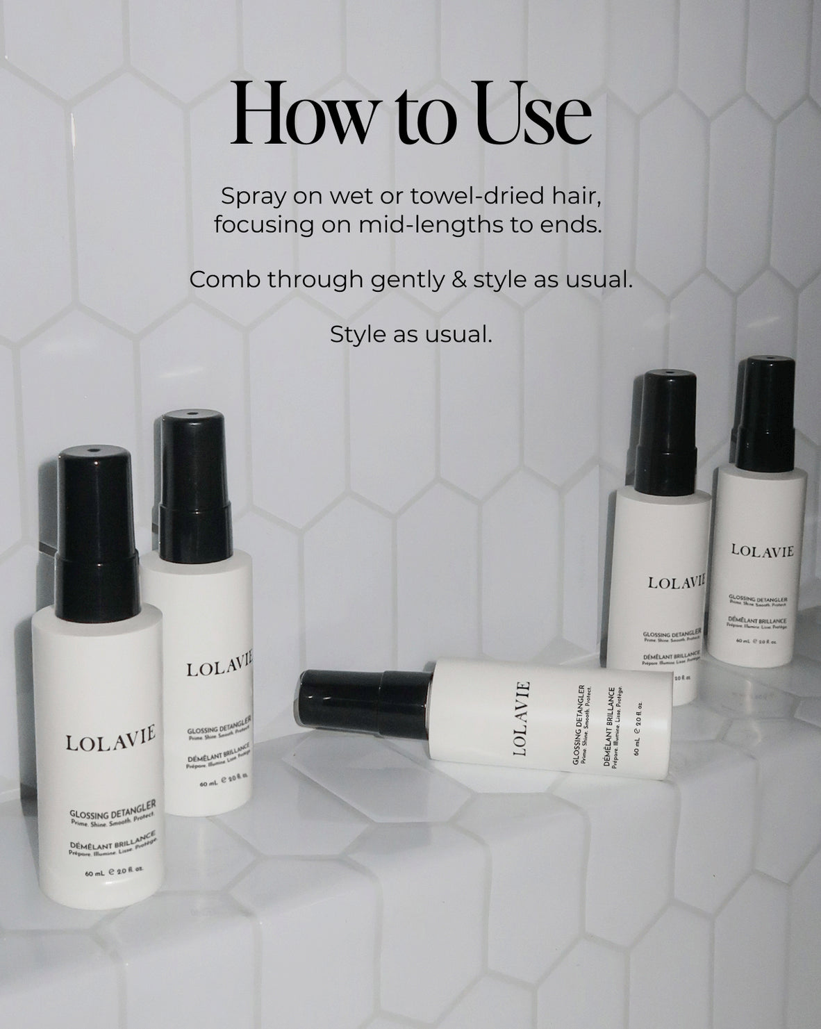 Spray onto wet or towel-dried hair, focusing on mid-lengths to ends. Gently comb through with your fingers, a brush, or a wide-tooth comb. Follow with any additional styling products, then style as usual for a smooth, polished finish.